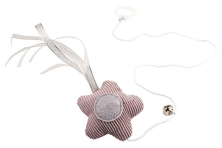Забавная игрушка в виде звезды для кошек сделана из вельвета. Игрушка содержит кошачью мяту, что делает ее еще более привлекательной для вашего питомца. Кошачья мята вызывает у кошек реакцию, которая заставляет их особенно охотно играть. Дразнилка имеет колокольчик и эластичный шнурок, который можно намотать на палец.