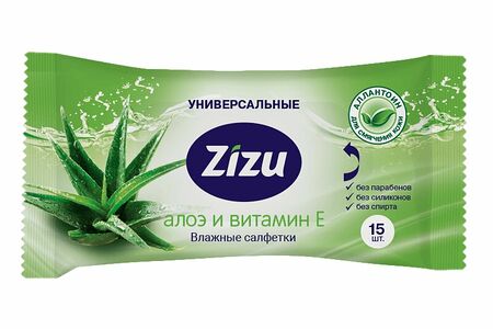 Салфетки влажные Zizu 15 шт универсальные алоэ и витамин Е доставка