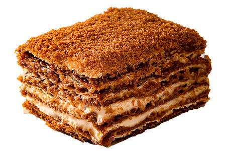 ХранениеХранить при температуре -2-6С. СоставМука, сахар, мед, масло сливочное, яйцо куриное, сода пищевая, сливки 33%, сметана, сахар, ваниль.