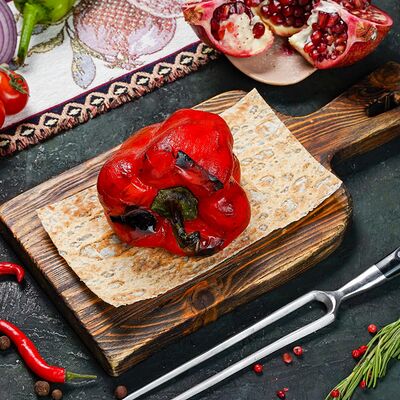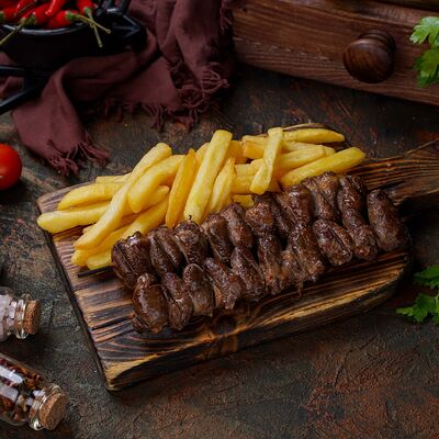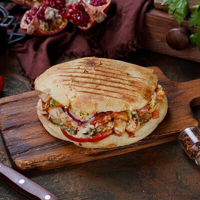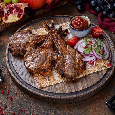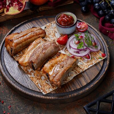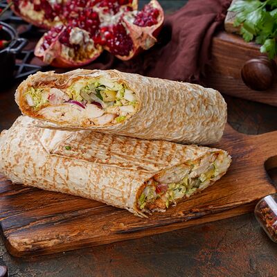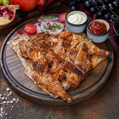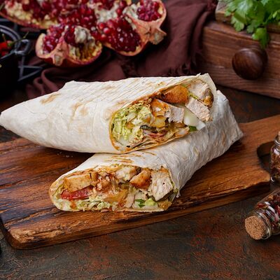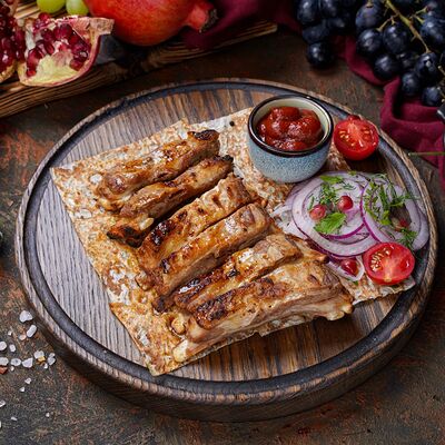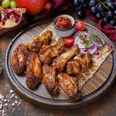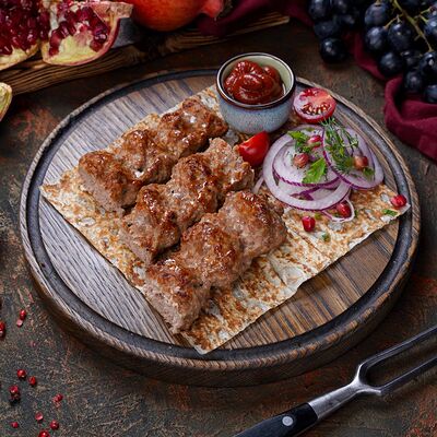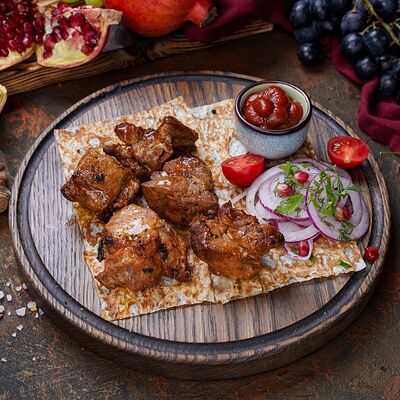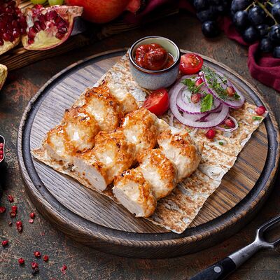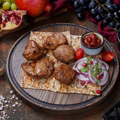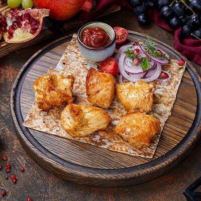 Куриная мякоть, лук, зелень, шашлычный соус, лаваш армянский