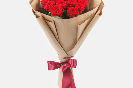 Атласная лента (1 шт.), роза Ред Наоми (15 шт.), упаковка-бумага (1 шт.)