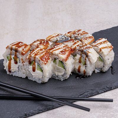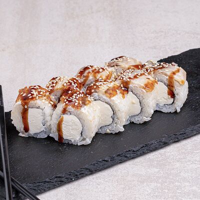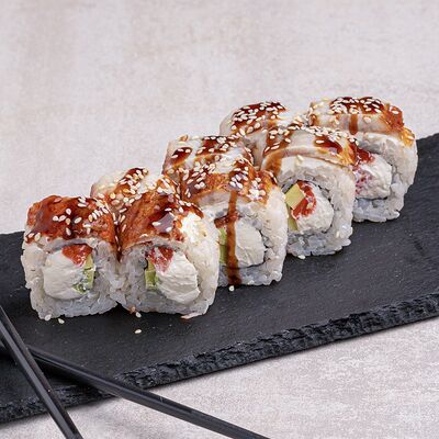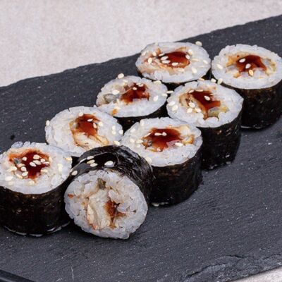 Угорь, соус сырный, японский рис, нори