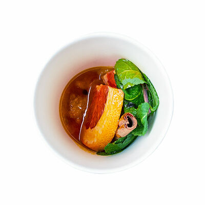 Креветка, манго, руккола, вяленые томаты, кинза, микс соусов, 120 г