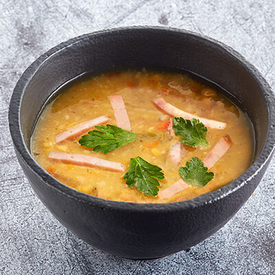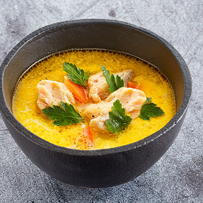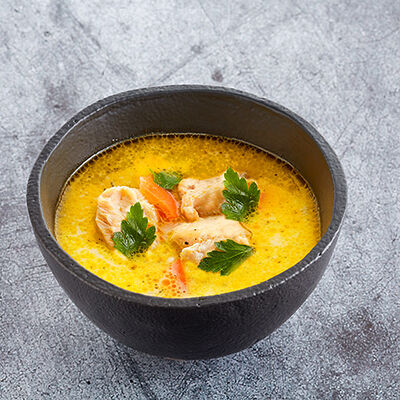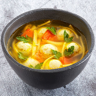 Суп-лапша с фрикадельками из куриного филе, морковью, специями и зеленью. Двойная порция
