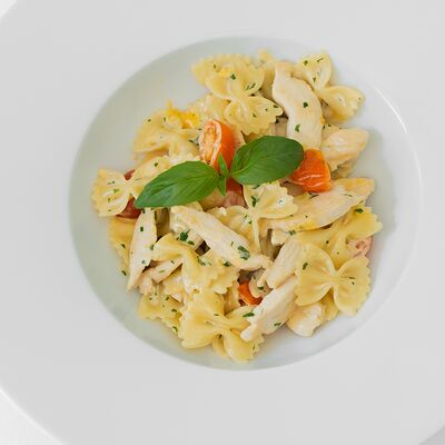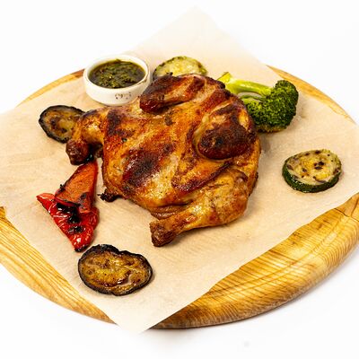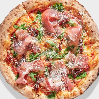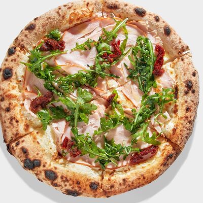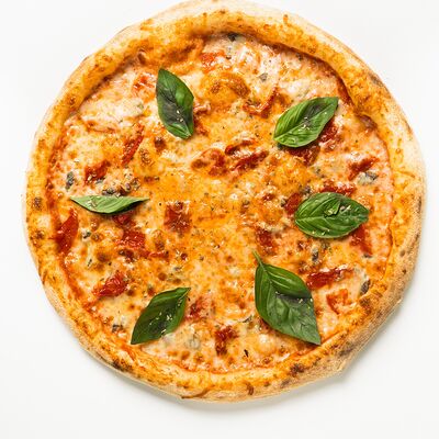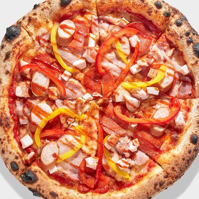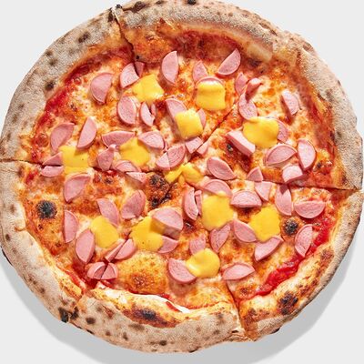 Томатный соус, моцарелла, охотничьи колбаски, болгарский перец, бекон, чоризо, соус BBQ, копченая куриная грудка (30 см)