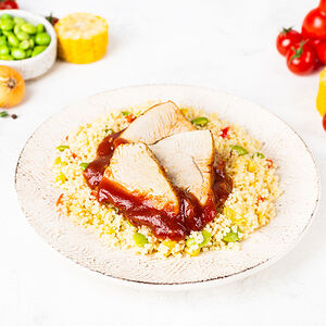 Классический узбекский плов с ароматными восточными специями. Чтобы приготовить правильный плов, нужно правильно обжарить овощи и мясо птицы. Затем важно так томить рис, чтобы получился плов (а не каша). Наше блюдо как в лучшем ресторане с узбекской кухней. Пищевая ценность (средние значения на 100 г продукта): белки - 6,8 г; жиры - 5,2 г; углеводы - 13,4 г. Энергетическая ценность (средние значения на 100 г продукта): 128 ккал/536 кДж.