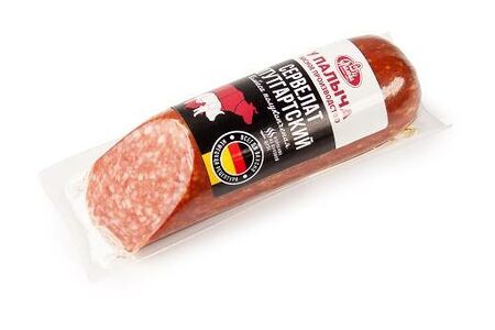Филе куриное, шпик, говядина, молоко сухое цельное, смесь посолочно-нитритная (соль, фиксатор окраски нитрит натрия), специи и экстракты специй, регулятор кислотности пирофосфаты, сахар. На предприятии вырабатывается продукция с применением следующих аллергенов: арахиса, глютена, кунжута, молока, орехов, яиц. Пищевая ценность в 100 г продукта (среднее значение на 100 г продукта): белки 15,5 г; жиры 36,1 г; углеводы 1,1г. Энергетическая ценность: 392 ккал/ 1640 кДж.