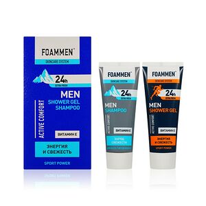 Мужской подарочный набор Foammen ( гель для душа " Заряд свежести " 75мл + мочалка для тела Aqua Joy Черная ) доставка