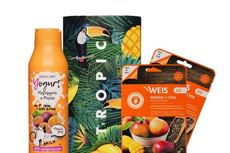Женский подарочный набор Tropic (гель для душа Delicare Yougurt маракуйя и манго 400 мл, маска для лица Weis с манго и семенами чиа 23 г*2 шт) доставка