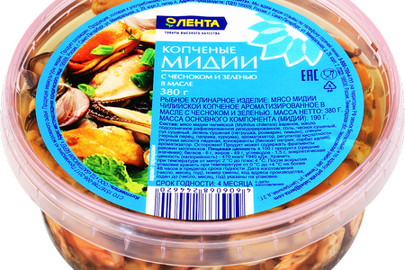 Мидии копченые ЛЕНТА в масле с чесноком и зеленью доставка