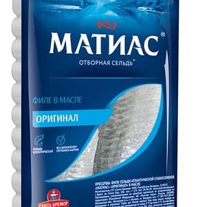 Сельдь Матиас Оригинал филе 250г - это пресервы, приготовленные из атлантической сельди с добавлением растительного масла и соли. Переработка рыбы на специальном оборудовании из Голландии и Исландии позволяет максимально бережно отделять филе от хребта, а современные технологии посола создают плотную упругую консистенцию и приятный характерный вкус с умеренным содержанием соли. Сельдь - это ценный источник витаминов, минералов, жирных кислот Омега-3, белка и аминокислот, которые легко усваиваются человеческим организмом. Такое филе можно порезать на порционные ломтики, а можно использовать для приготовления закусок и салатов (например, форшмак и селедка под шубой)..