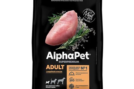Сухой полнорационный корм Alphapet Superpremium с индейкой и рисом для взрослых собак мелких пород доставка