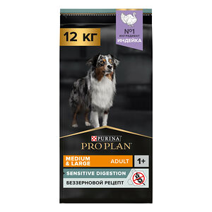 Сухой корм PRO PLAN® для взрослых собак средних и крупных пород с чувствительным пищеварением GRAIN FREE (беззерновой), с высоким содержанием индейки 2,5 кг доставка