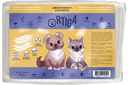 Ortiga пеленки впитывающие одноразовые с суперабсорбентом Classic (60 х 90 см.) 30 шт. доставка