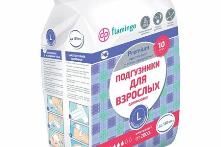 Flamingo Premium Подгузники для взрослых одноразовые 100 см-150 см р.L 10 шт доставка