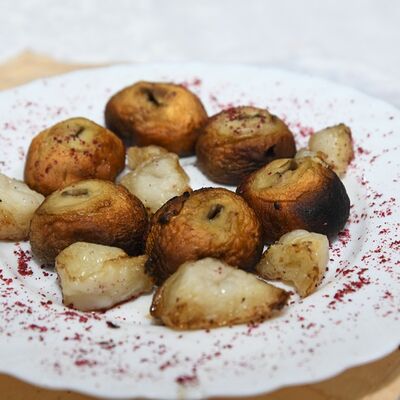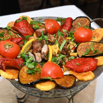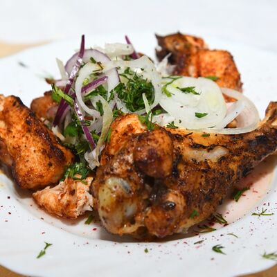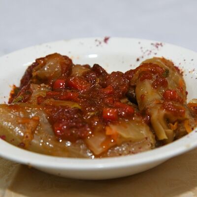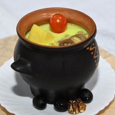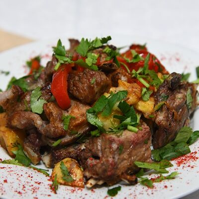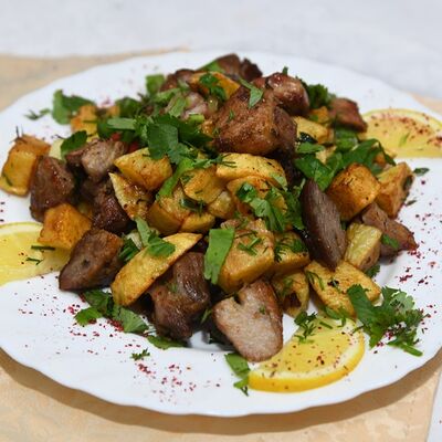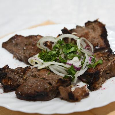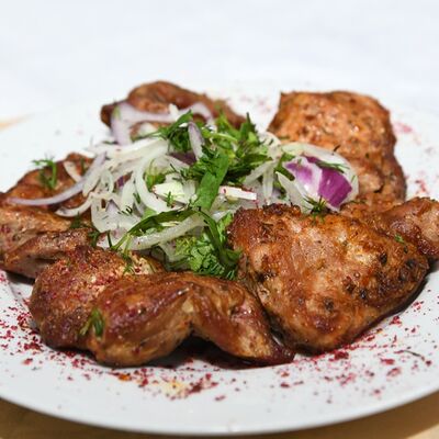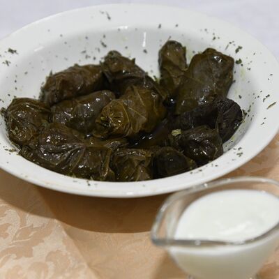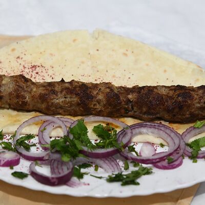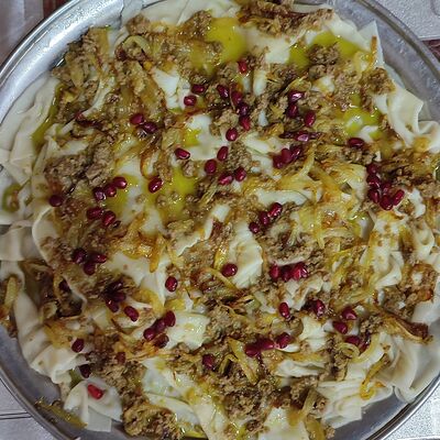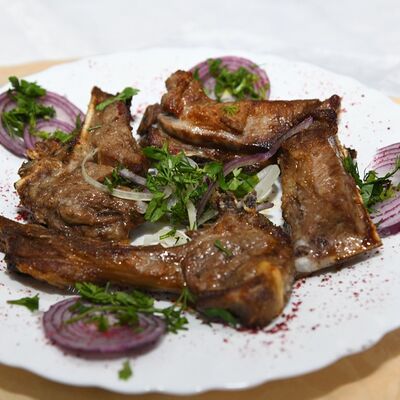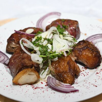Фарш из баранины, рис, мята, лук репчатый, кинза, укроп, куркума, курдюк, кефир домашний