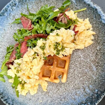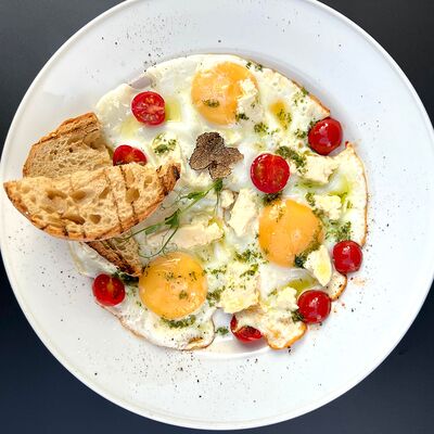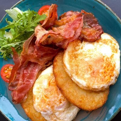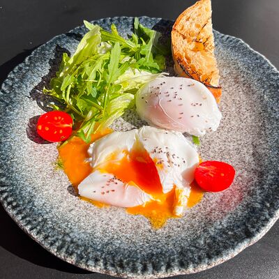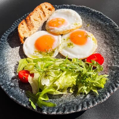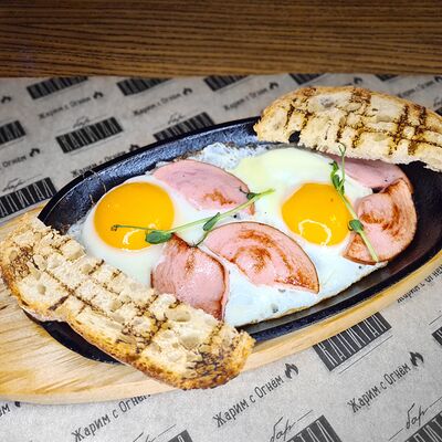 Взбитые и жаренные на сковороде яйца (2 шт.)