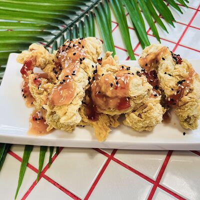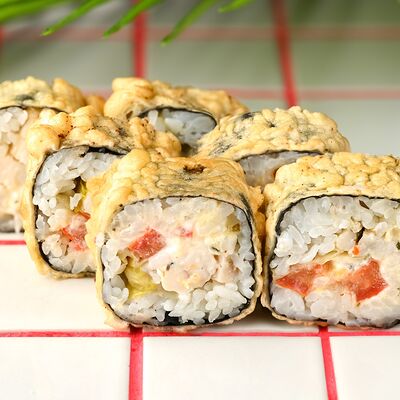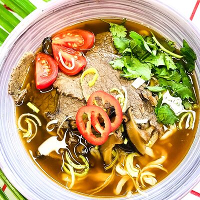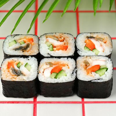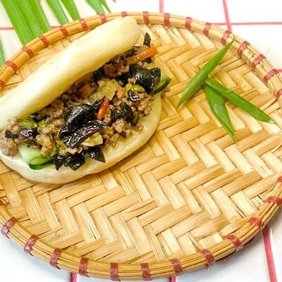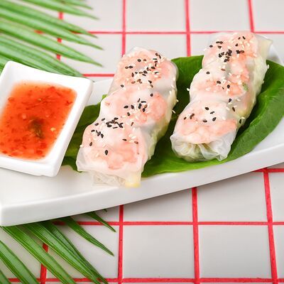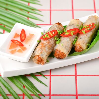 Рисовая бумага, говяжий фарш, кинза, грибы шиитаке и древесные, фунчоза, ростки сои, морковь, лук зеленый, соус устричный