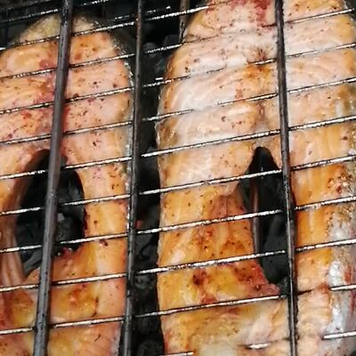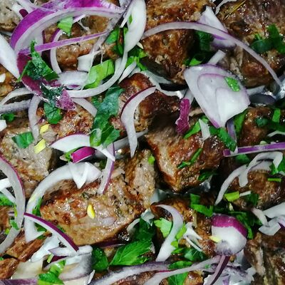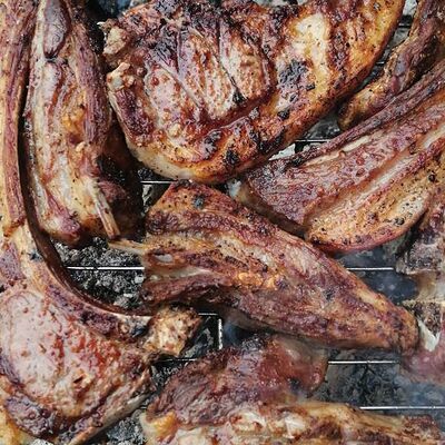 Мякоть с ножки молодого ягнёнка, жаренная на открытом огне