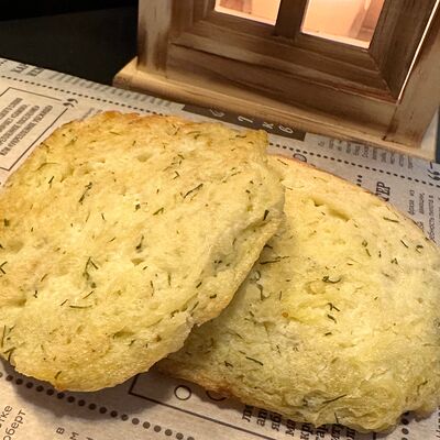 Картофель, лук репчатый, масло подсолнечное, мука пшеничная высшего сорта, меланж яичный, соль пищевая, укроп, чеснок