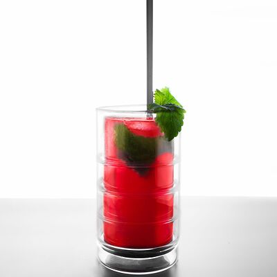 Мята, лимон, смородиновое пюре, вода газированная, сироп. Собственного приготовления