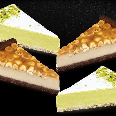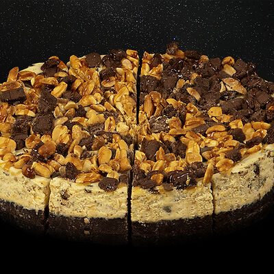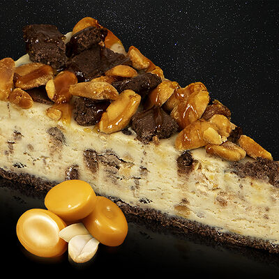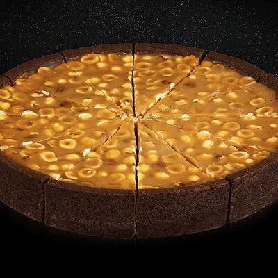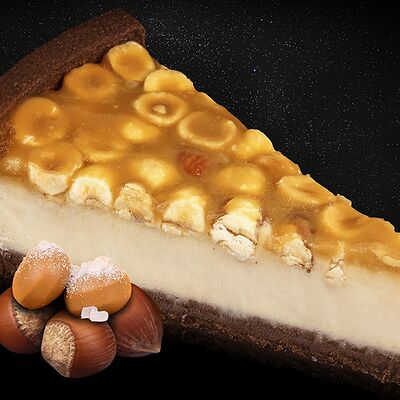 Традиционный ореховый чизкейк на базе нежного классического чизкейка дополнен большим количеством орехов. Лепестки миндального ореха по форме напоминают космический астероид, а дробленный фундук - звездную пыль