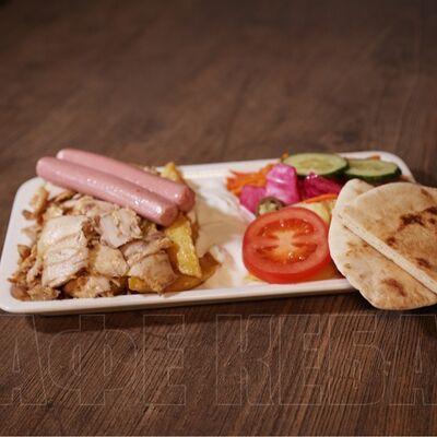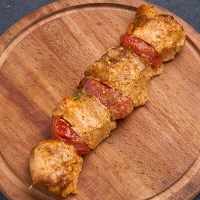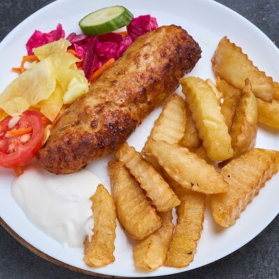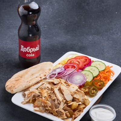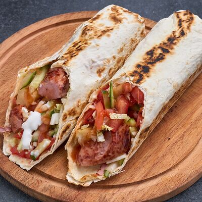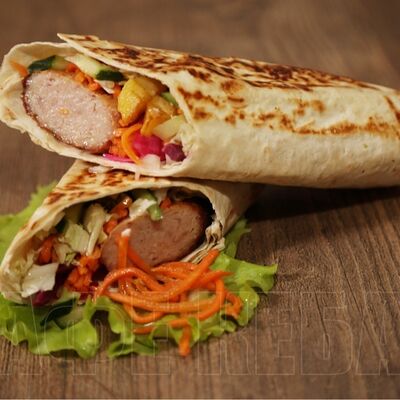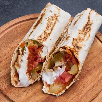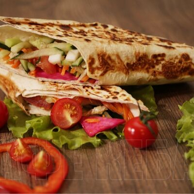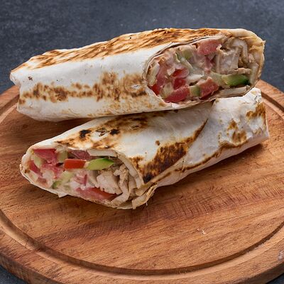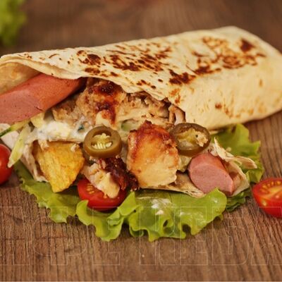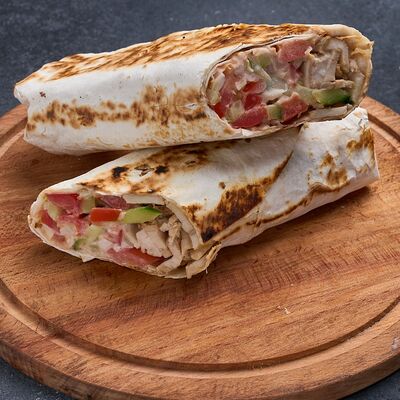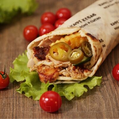Курица, огурцы, помидоры, пекинская капуста, фирменный соус, сырный лаваш, специи