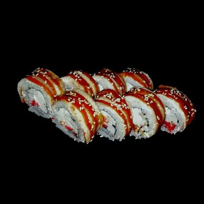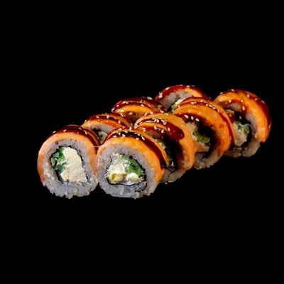 Сливочный сыр, огурец, краб, спайси-соус, кунжут, унаги-соус