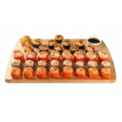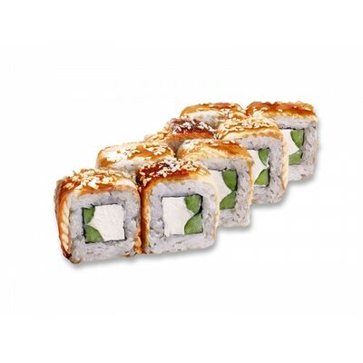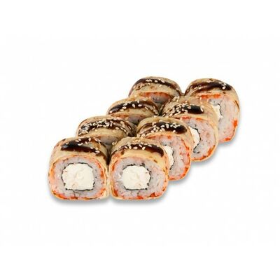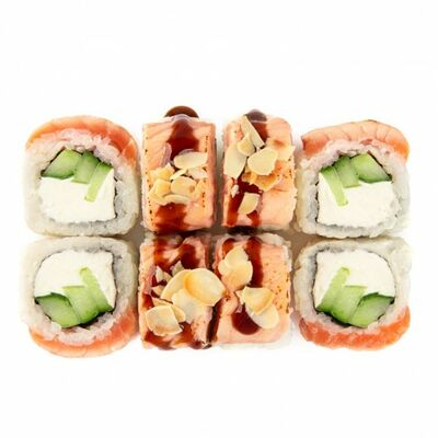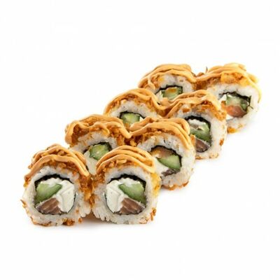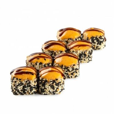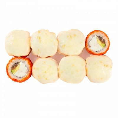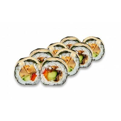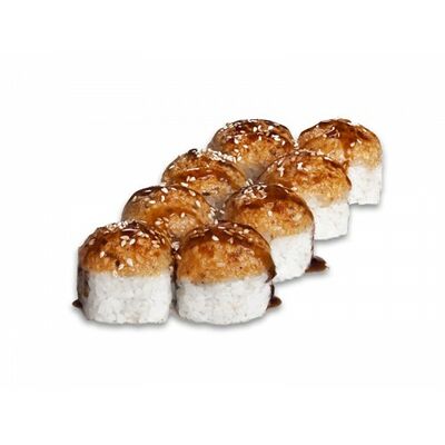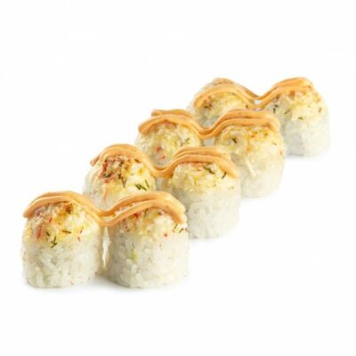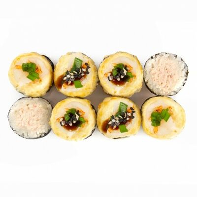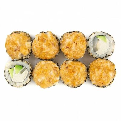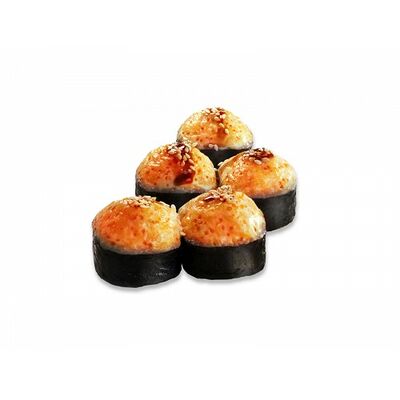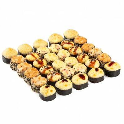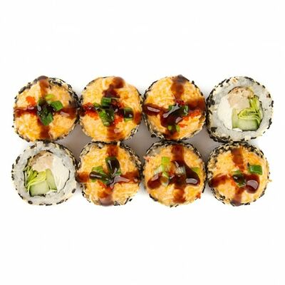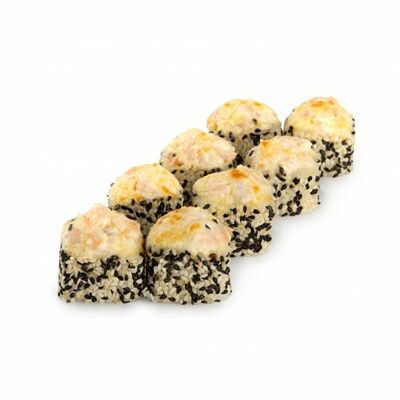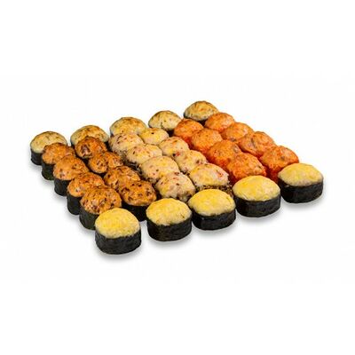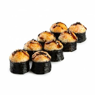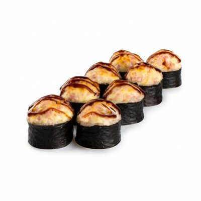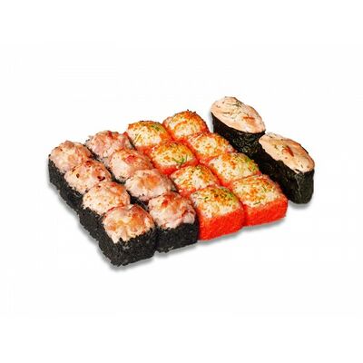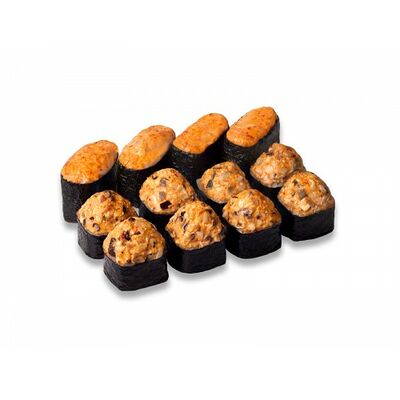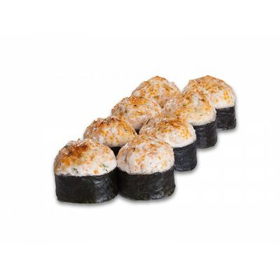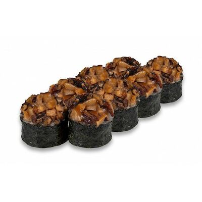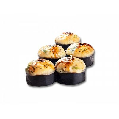 Ролл с курой и грибами, Суши запеченные острые мидии (2 шт.), Суши острые запеченые краб-крем (2 шт.)