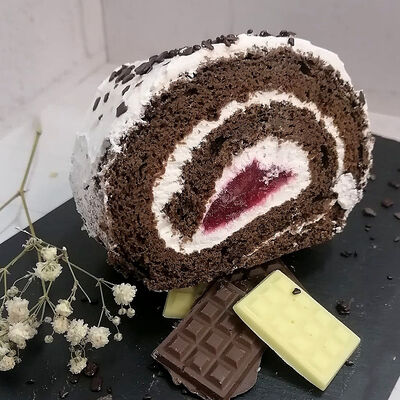 Кефир, гель кондитерский, мука, какао-порошок, разрыхлитель, сода пищевая, сахар, ванилин, яйцо, соль, сливки, сахарная пудра