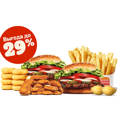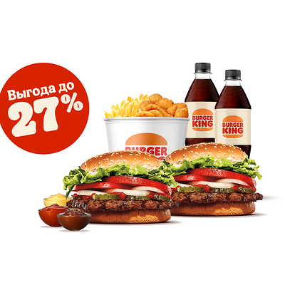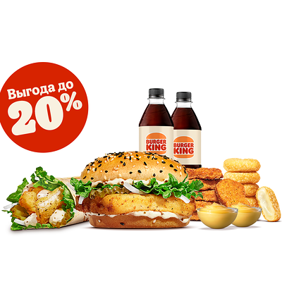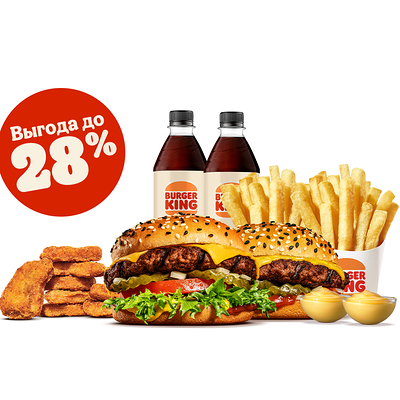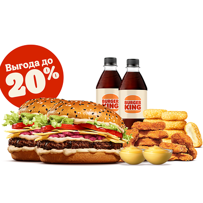 Кинг Комбо – это сытно и выгодно! Попробуй Комбо с бургером, большой Кинг Фри, напитком и соусом на выбор по отличной цене!