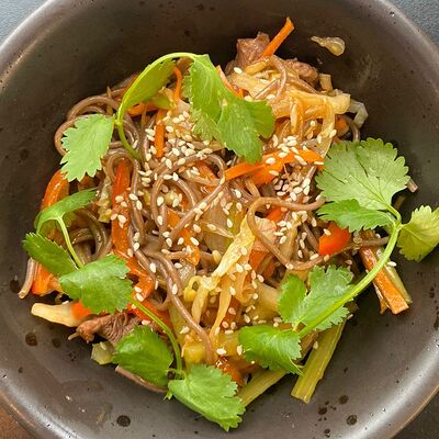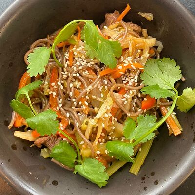 Вок с курицей и гречневой лапшой доставка