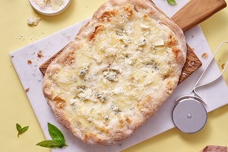 Римская пицца 4 сыра:моцарелла, сыр с голубой плесенью, бри, гойя доставка