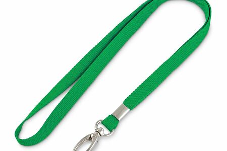 Лента для бейджа зеленого цвета с карабином-клешней. Лента изготовлена из репсового материала. Длина 90 см, ширина 10 мм. Используется для фиксации бейджа или пропуска.