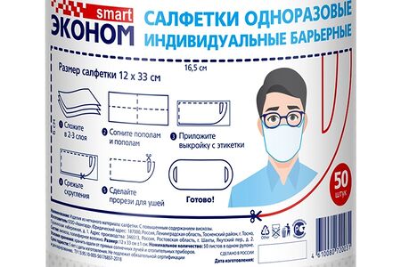 Салфетка Эконом smart одноразовая индивидуальная спанлейс, рулон 12х33см 50 шт Россия доставка
