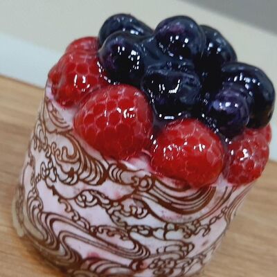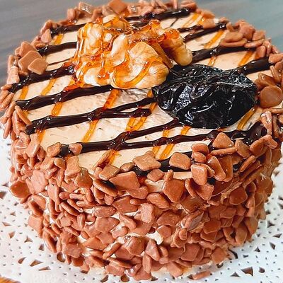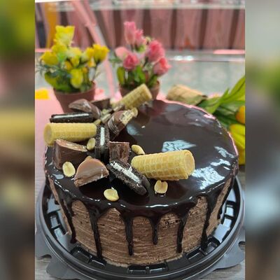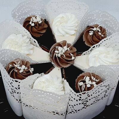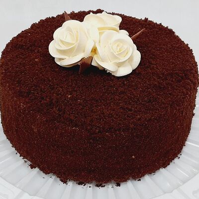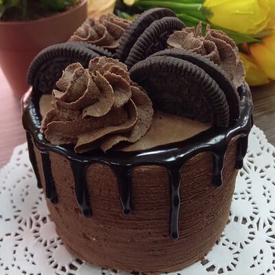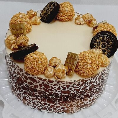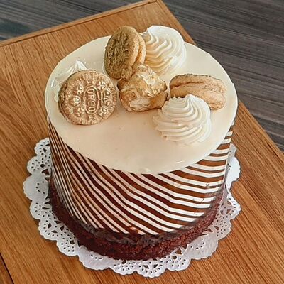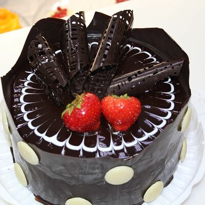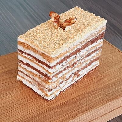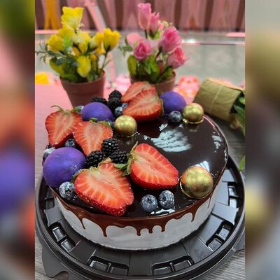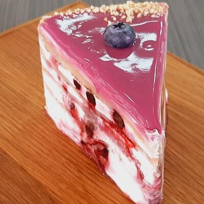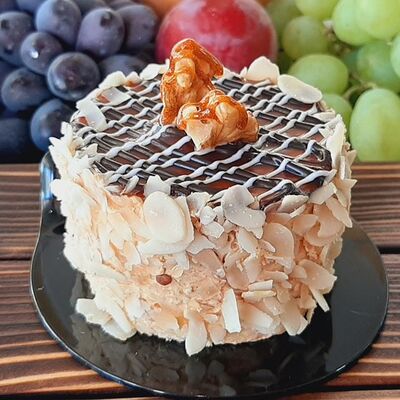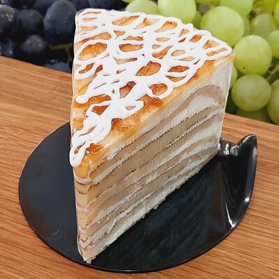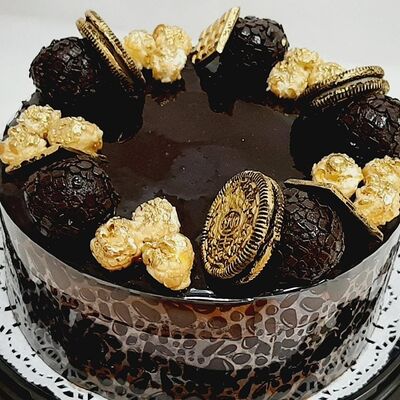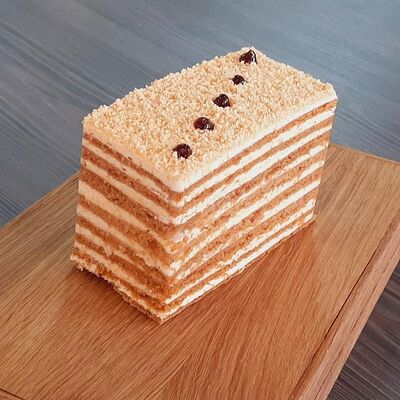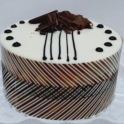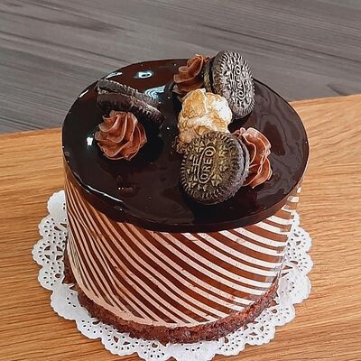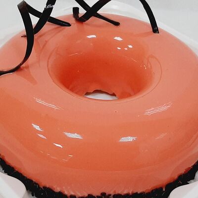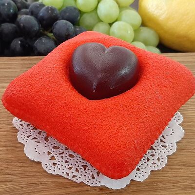 Пирожное состоит из шоколадного плотного бисквита и двух видов мусса (шоколадный мусс, манговый мусс). Этот торт окунет вас в атмосферу солнечного лета