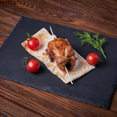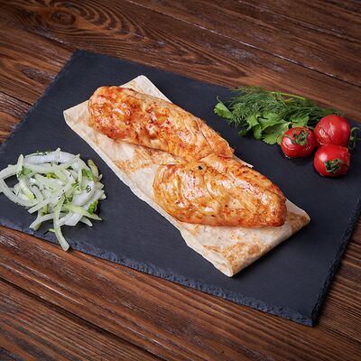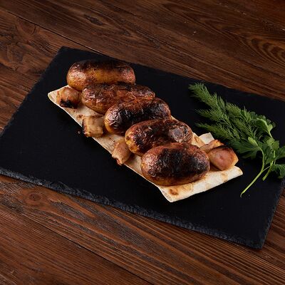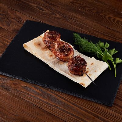 Картофель на мангале (1 кг) и шампиньоны (1 кг), всё в лаваше