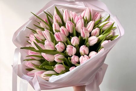 51 розовый тюльпан в розовой упаковке доставка