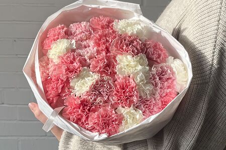Букет из 25 диантусов в белом крафте доставка