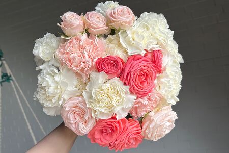 11 диантусов , 3 ветки кустовых роз , упаковка дизайнерская