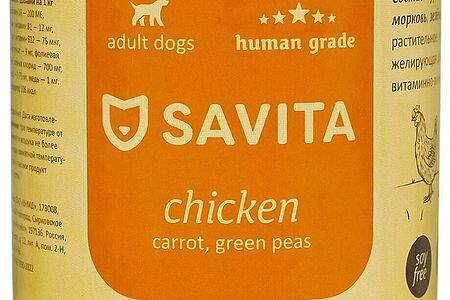 Консервы SAVITA для собак курица морковь и зеленый горошек доставка