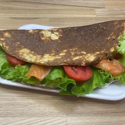 Хлеб отрубной, куриное филе, соленый огурец, сыр твердый 15%, салат, творожный сыр