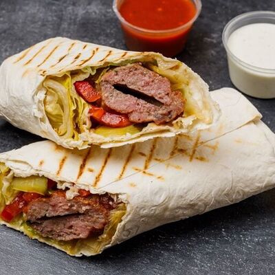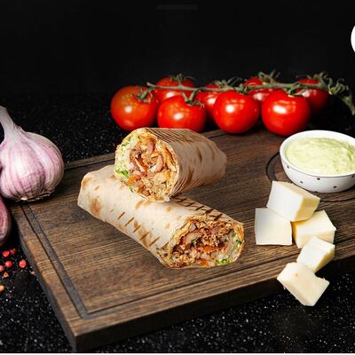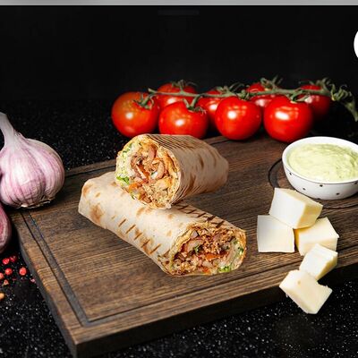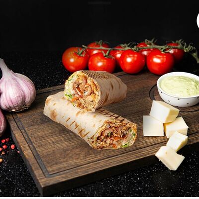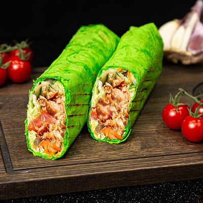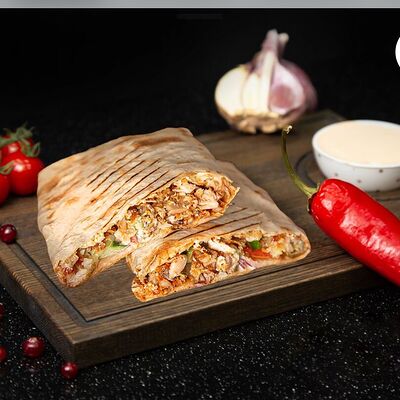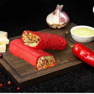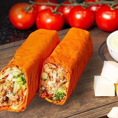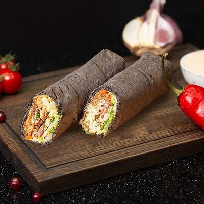 Лаваш, нежная курица, салат, соус, маринованные огурчики