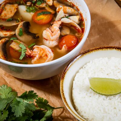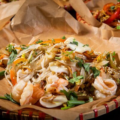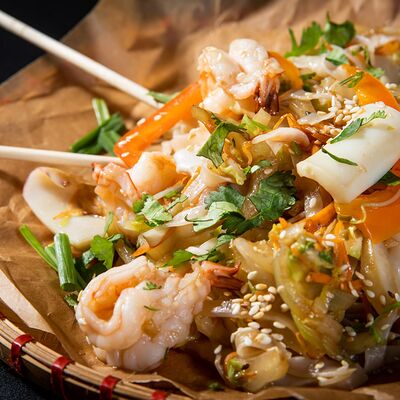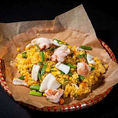 Жареный рис с креветками и кальмарами доставка