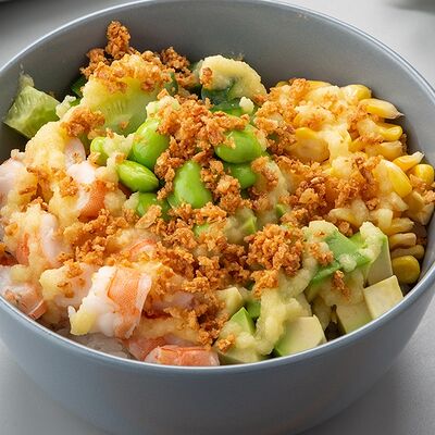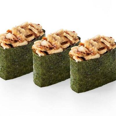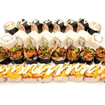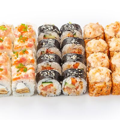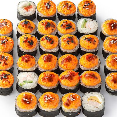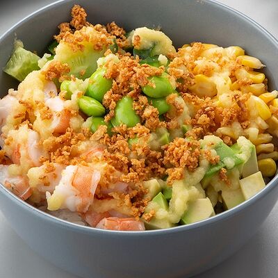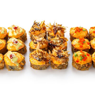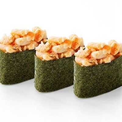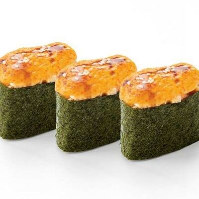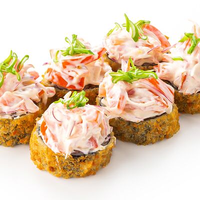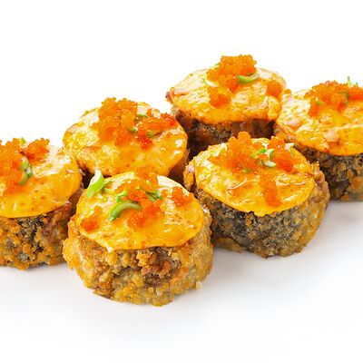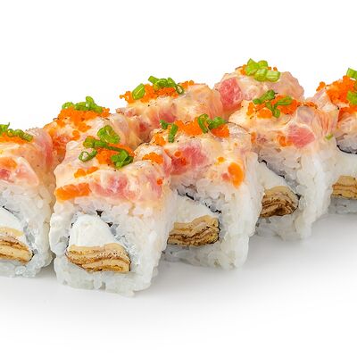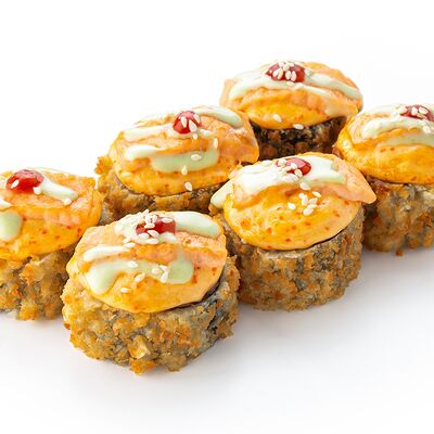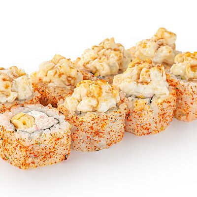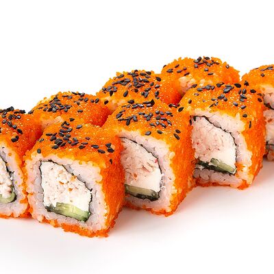 Креветка в темпуре, снежный краб, огурец, соус спайси, соус унаги, икра масаго