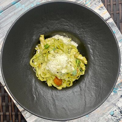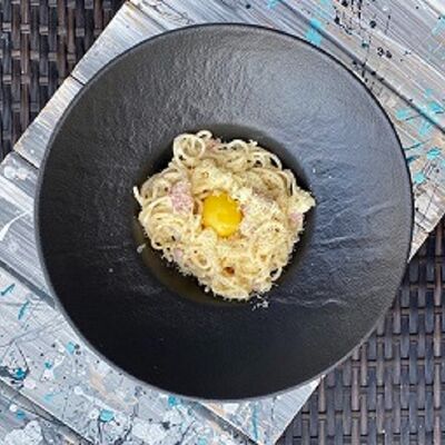 Классическая паста, приготовленная на основе бекона и сливок. Подается с яичным желтком и сыром пармезан