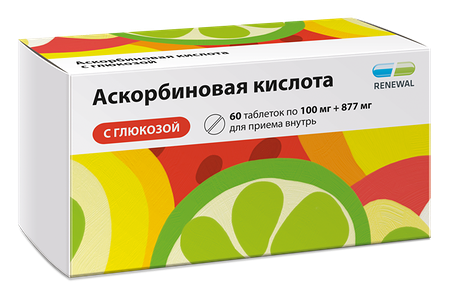 Аскорбиновая кислота с глюкозой 60 шт таблетки Renewal доставка