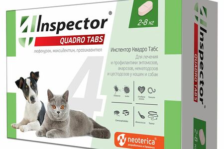 Таблетки для кошек и собак INSPECTOR Quadro Tabs от внешних и внутренних паразитов 2-8кг доставка