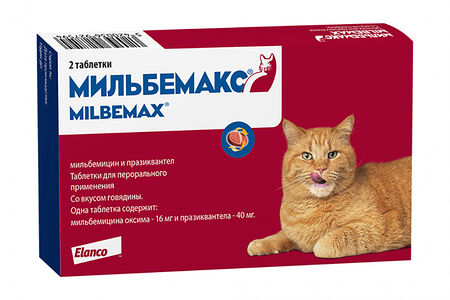 Таблетки от гельминтов Мильбемакс со вкусом говядины для крупных кошек, 2 таблетки доставка