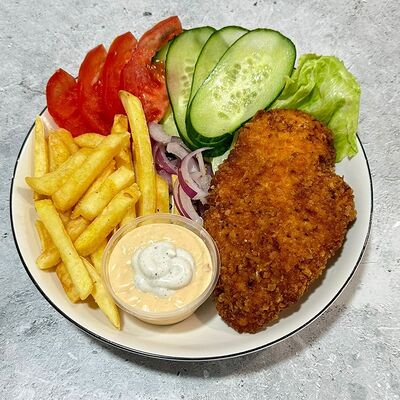 Курица, сыр, айсберг, помидор, два вида соуса